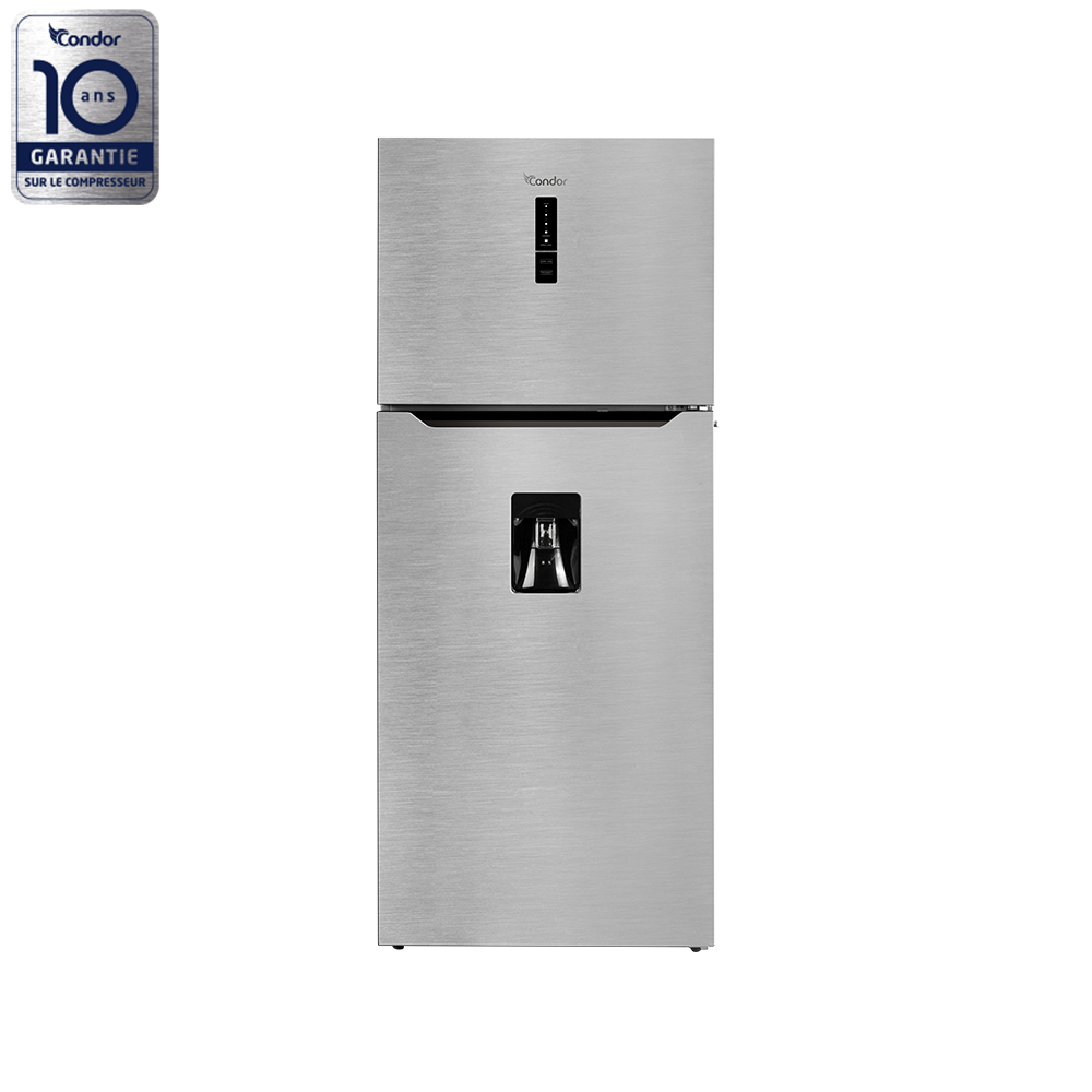 Le réfrigérateur double porte de Condor, d’une capacité nette de 476 litres, est équipé de la technologie No Frost, éliminant ainsi la formation de givre pour un entretien plus facile. Classé en catégorie énergétique A+ pour son efficacité énergétique, Avec distributeur d’eau et un afficheur digital , sa finition en inox lui confère un aspect moderne et épuré, idéal pour s’intégrer dans divers espaces domestiques.